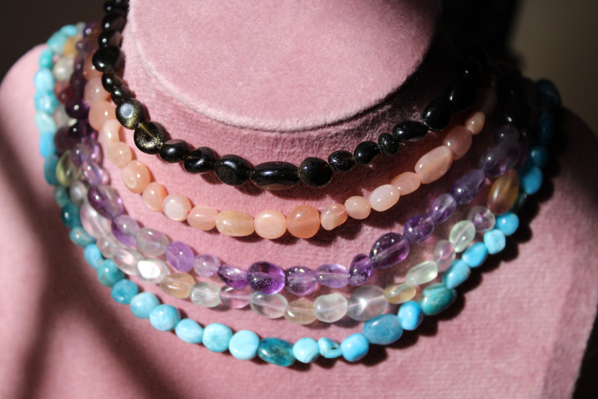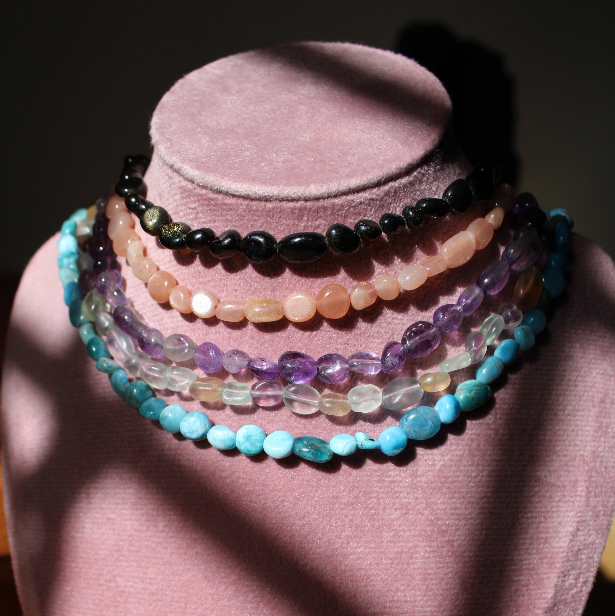 Estás bonitas piezas están compuestos por piedras roladas e incluyen un extensor (bisutería) para poder ajustarlos a la medida de tu preferencia. Hay varias opciones de piedras disponibles: